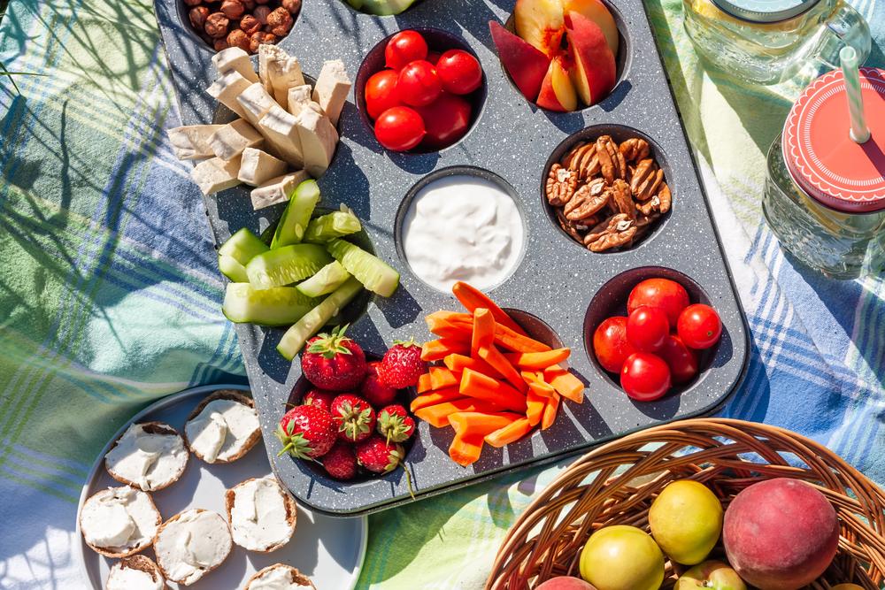 • Snacks maison : pois chiches grillés, roulés de légumes, brochettes froides.